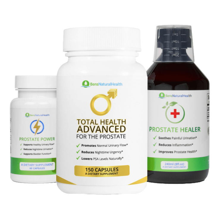 The three powerful natural supplements that are included in the program are Total Health Advanced For the Prostate, Prostate Healer & Prostate Power. They combine to address all aspects of prostate health, working fast to restore optimal urinary health without drugs, surgery or side effects.